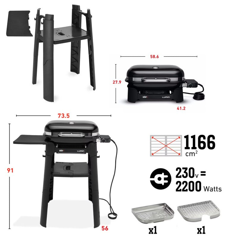 Barbecue Elettrico Weber Lumin Compact con supporto - colore Nero.