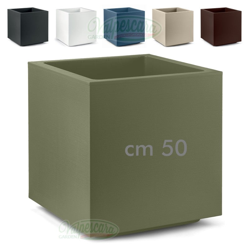 Vaso Cubo Matheria 50 in plastica a doppia parete e riserva d'acqua.