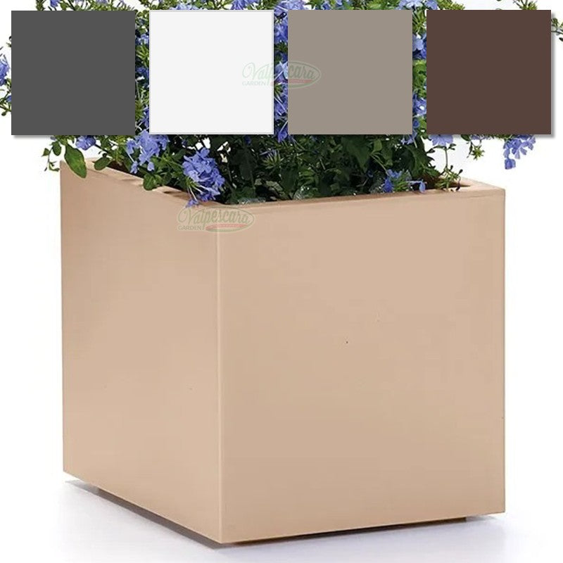 Provvista di ruote orientabili, la cassetta ha una pratica riserva acqua, già integrata, per offrire un benessere permanente alle piante. Kebe è resistente al gelo e ai raggi UV.